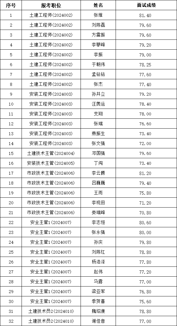 根據《關于2024年亳州金地建工有限公司外包人員公開招聘》精神,經面試、體檢、考察等環(huán)節(jié),確定張維等32名同志符合本次招聘條件,擬錄用為亳州金地建工有限公司外包人員,現予公示。
